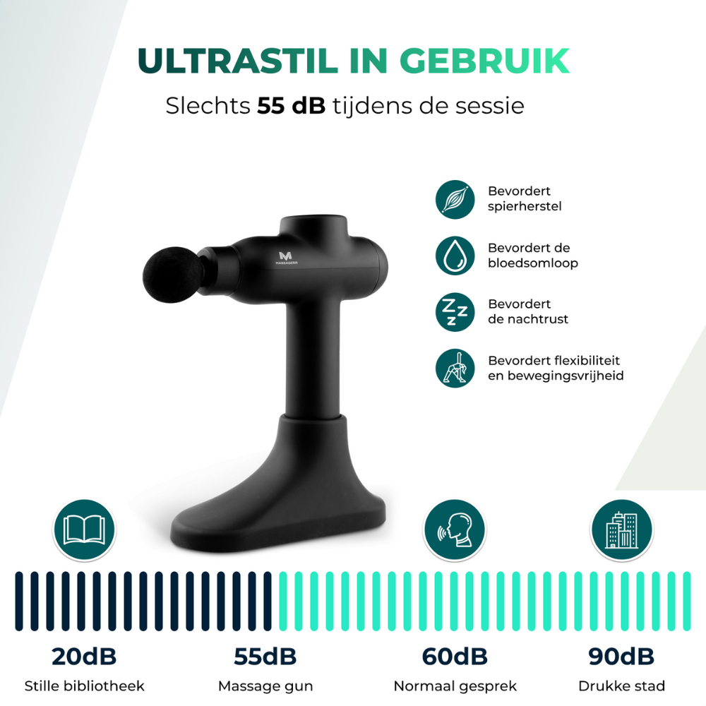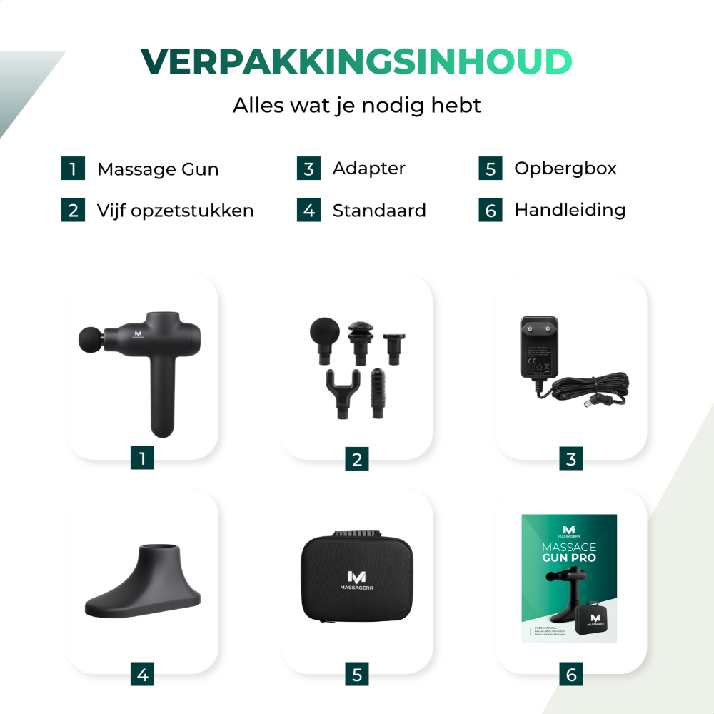 De Massagerr® Massage Gun PRO biedt professionele massagekwaliteit in het comfort van je eigen huis. Dit stille en krachtige apparaat dringt tot 60% dieper door in de spieren, ideaal voor sporters, thuiswerkers en iedereen die verlichting zoekt van spierspanning. Met 5 snelheidsstanden, 4 unieke massagekoppen en een batterij die 6+ uur meegaat, kun je genieten van gerichte massages voor het hele lichaam. Of je nu herstelt van een intensieve training, de spanning van een werkdag wilt verlichten of gewoon wilt ontspannen, de Massagerr® Massage Gun PRO is jouw go-to massageoplossing.
